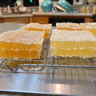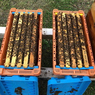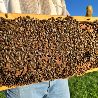 In 2022 we increased our number of hives again from seven to ten by splitting our colonies in the spring. Splitting hives is a way to increase your number of hives, and is a method to prevent bees from swarming. 2022 was very dry, but the bees blessed us with another great season. We had seven hives produce 1100 pounds of honey. In addition to selling through our Facebook page, we partnered with La Belle Vie—the Cafe at Frenchtown. La Belle Vie uses only our local honey in their coffees and teas. The demand for honey remained strong, and we sold out in January of 2023.